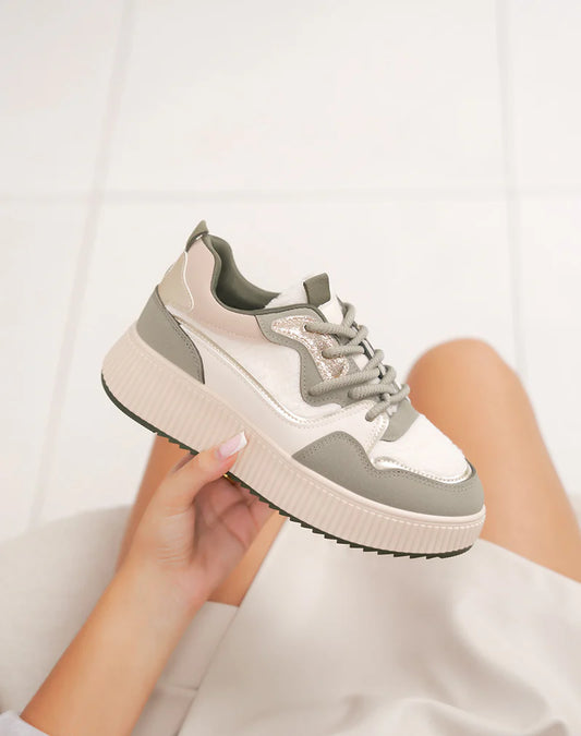 Baskets kaki moumoute à plateforme