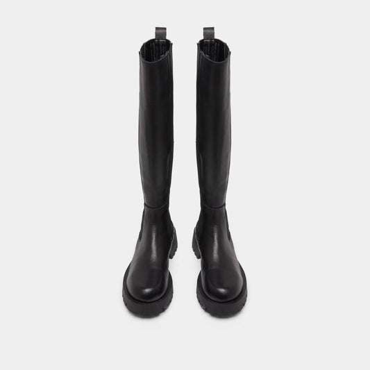 Bottes femme noires élégantes à talon épais moyen et bout rond fourré