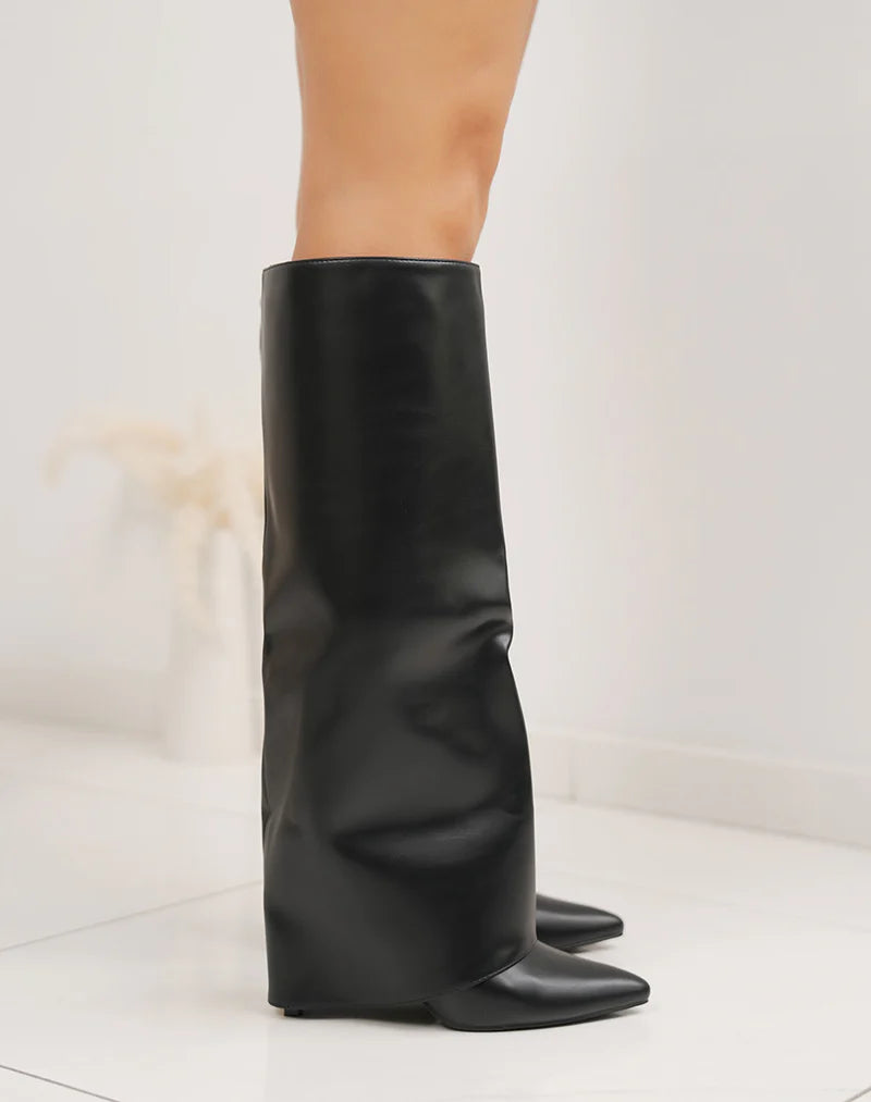 Bottes noires à revers, bout pointu et talons aiguilles élégants