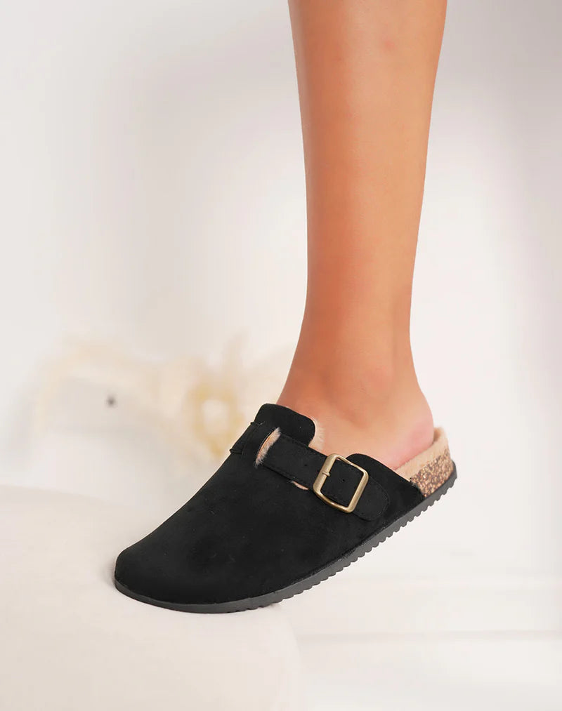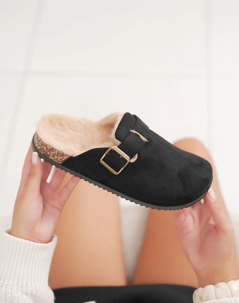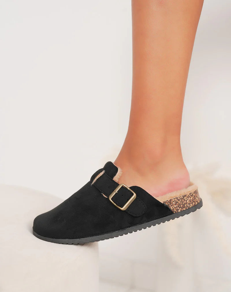 Alliez confort et style avec ces mules noires fourrées ultra douillettes. Parfaites pour la maison ou un look décontracté, elles sont dotées d’un intérieur en fausse fourrure chaude et d’une sangle décorative avec boucle métallique qui ajoute une touche tendance au modèle.